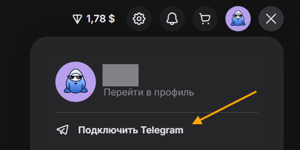 Нажать на иконку рядом с вашей аватаркой → “Подключить Telegram”.