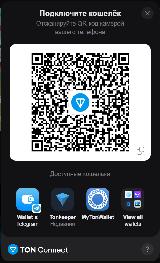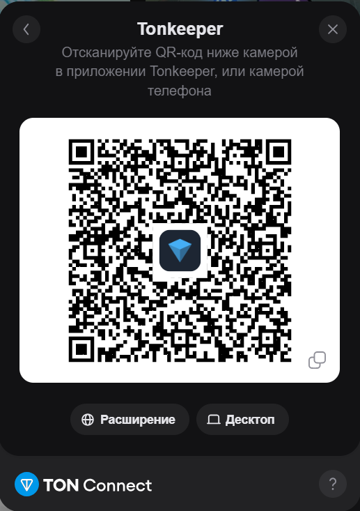 - При использовании десктопной версии браузера отсканируйте QR-код с помощью смартфона или используйте кнопку "Расширение" (если в вашем браузере установлено расширение вашего кошелька);
