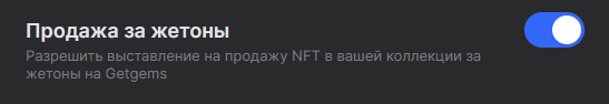У всех новых коллекций продажа за токены будет включена по умолчанию.