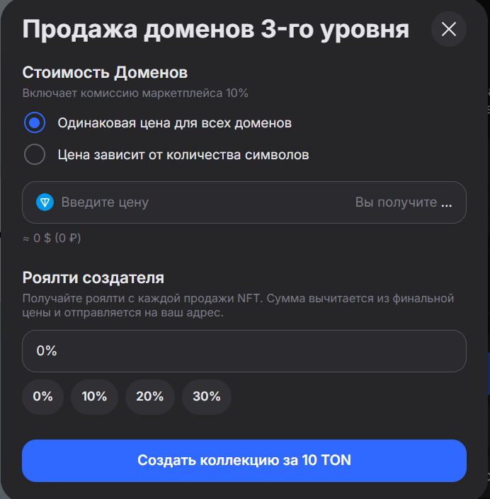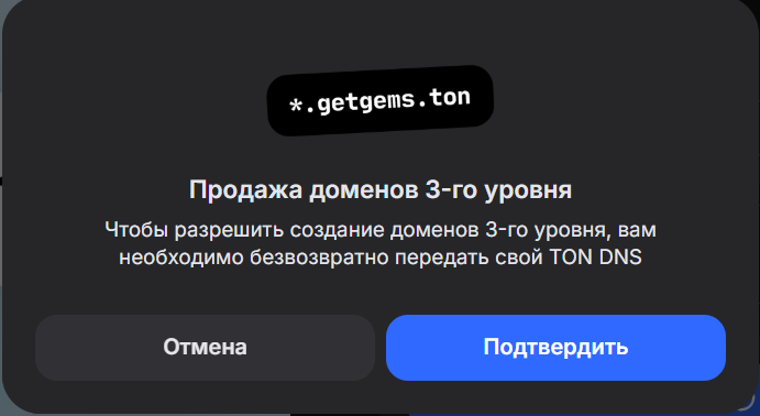 На Getgems есть возможность создания доменов третьего уровня из вашего TON DNS за 10 TON.