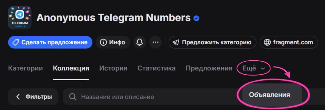 В коллекциях Anonymous Telegram Numbers и Telegram Usernames можно оставить публичное объявление по коллекции за 10 TON. В других коллекциях или отдельных NFT есть возможность написать комментарий за 0.5 TON. У вас есть возможность привлечь внимание к вашим NFT, поторговаться с другими пользователями или рассказать о конкурсе в собственном проекте.