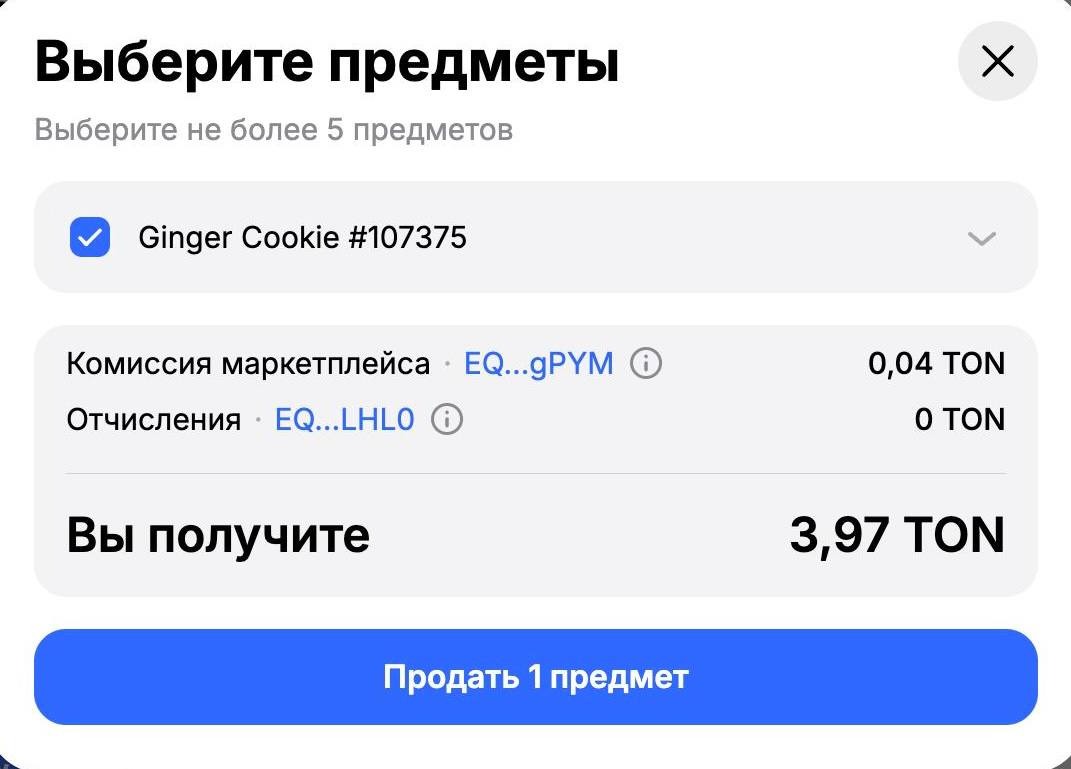 2. Выбрать количество предметов, которые хотите продать;