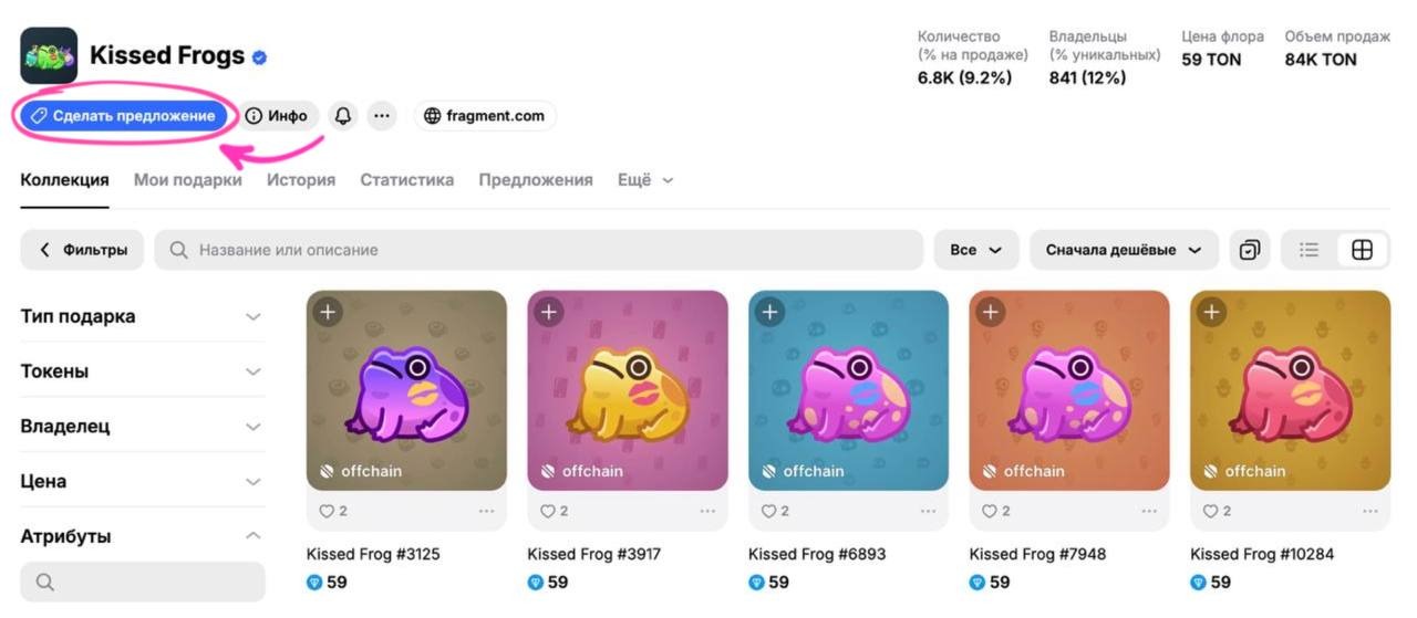 1. Выбрать нужную коллекцию и нажать на кнопку «Сделать предложение»;